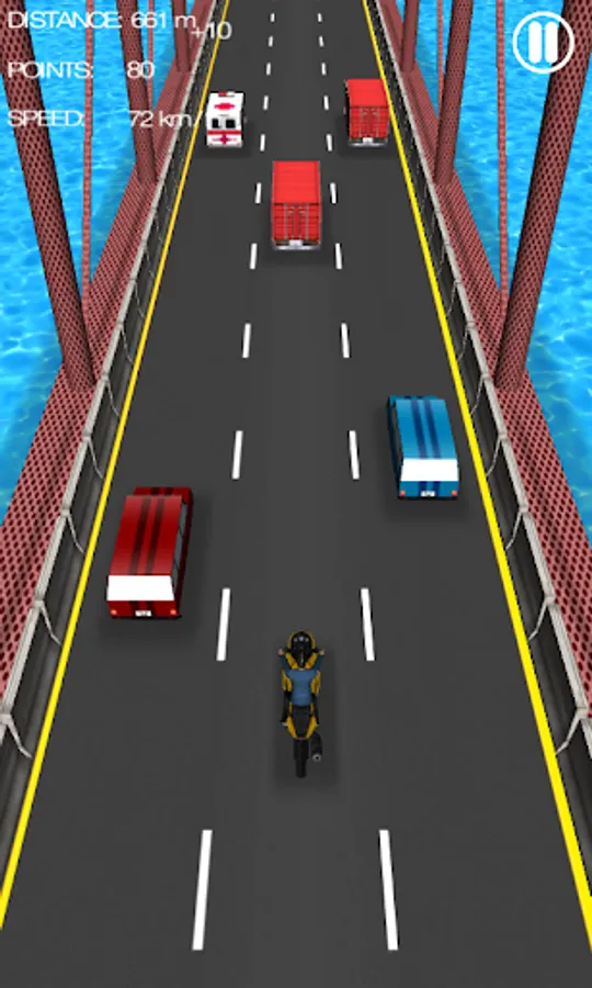 Drive your moto through traffic and enjoy the fast paced, thrilling racing game.