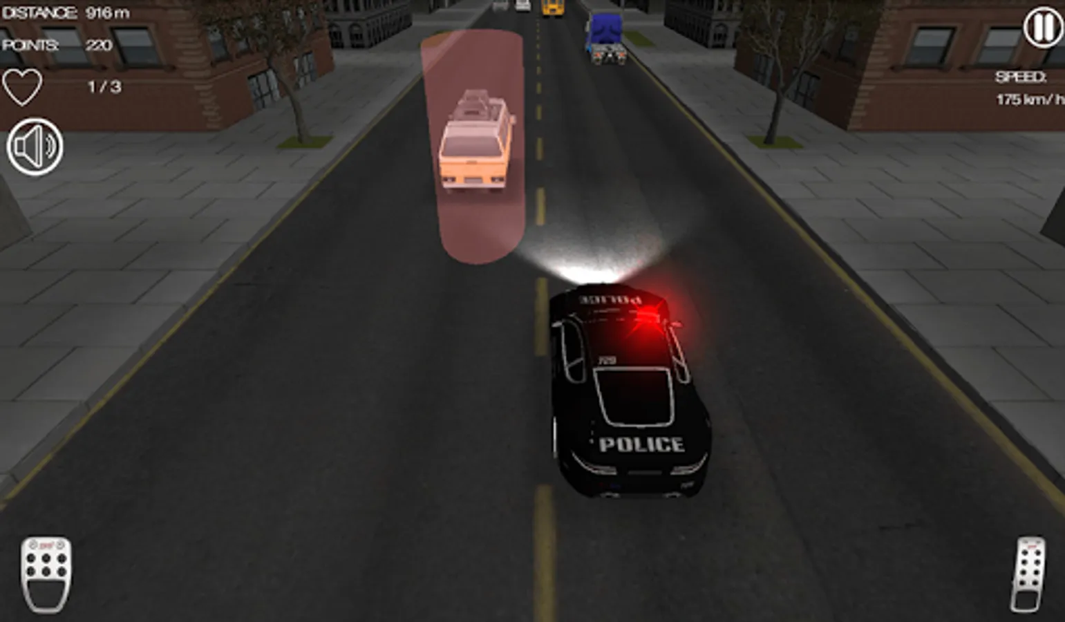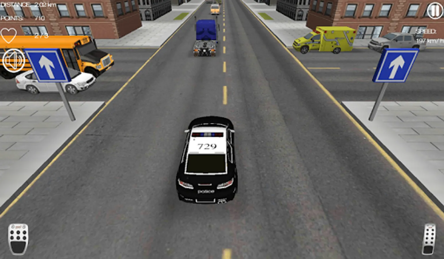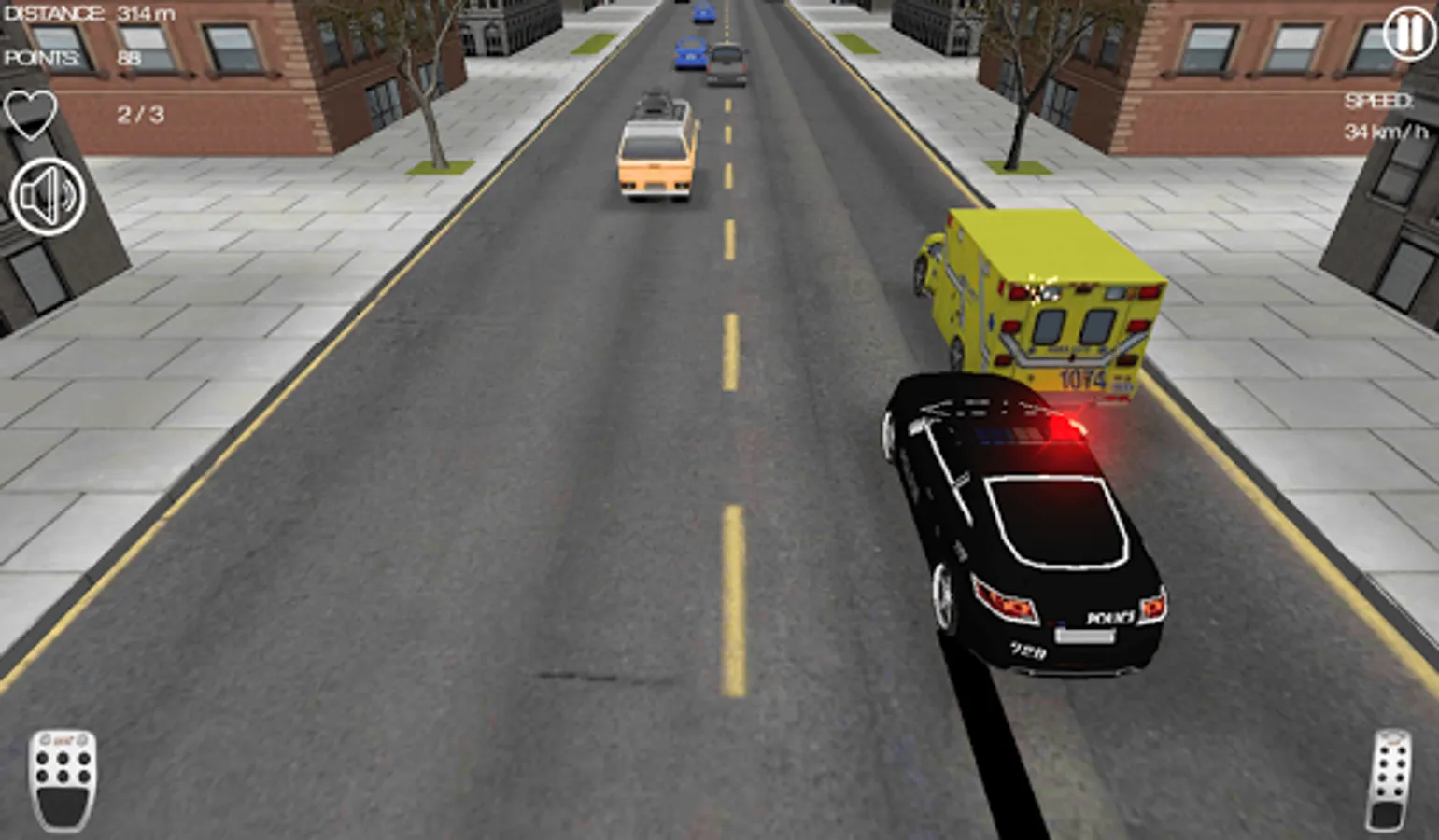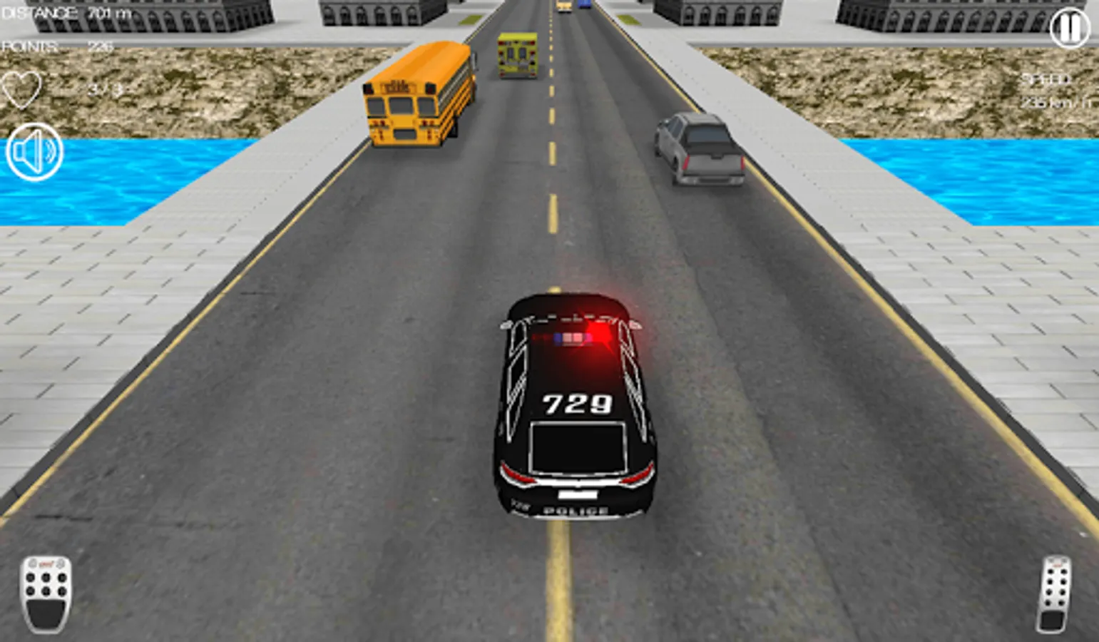 Drive police cars through traffic. Get in your car, chase enemies, earn money and buy better cars.