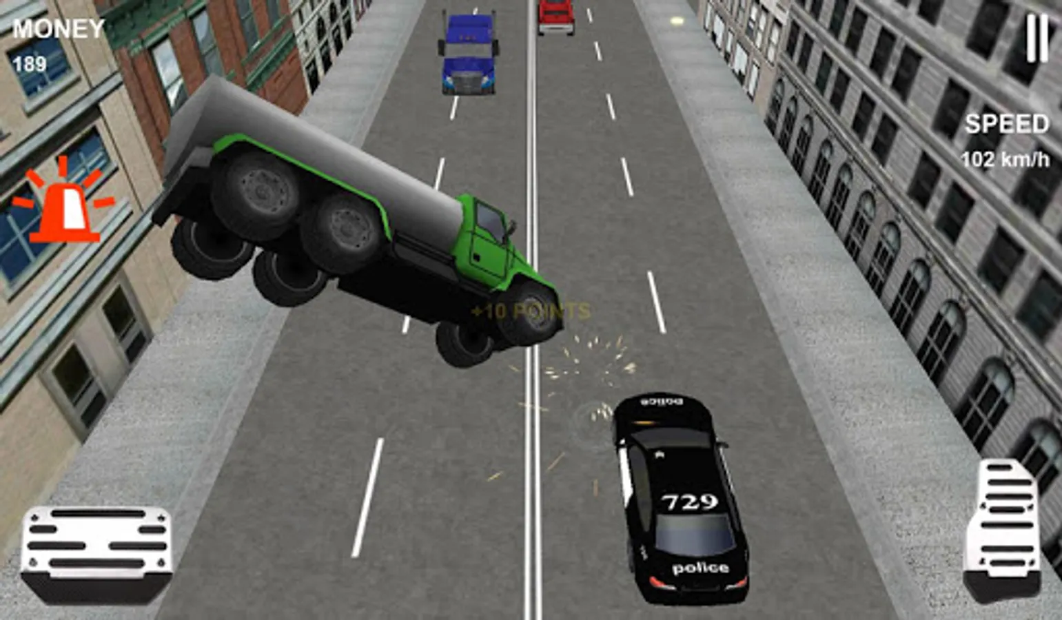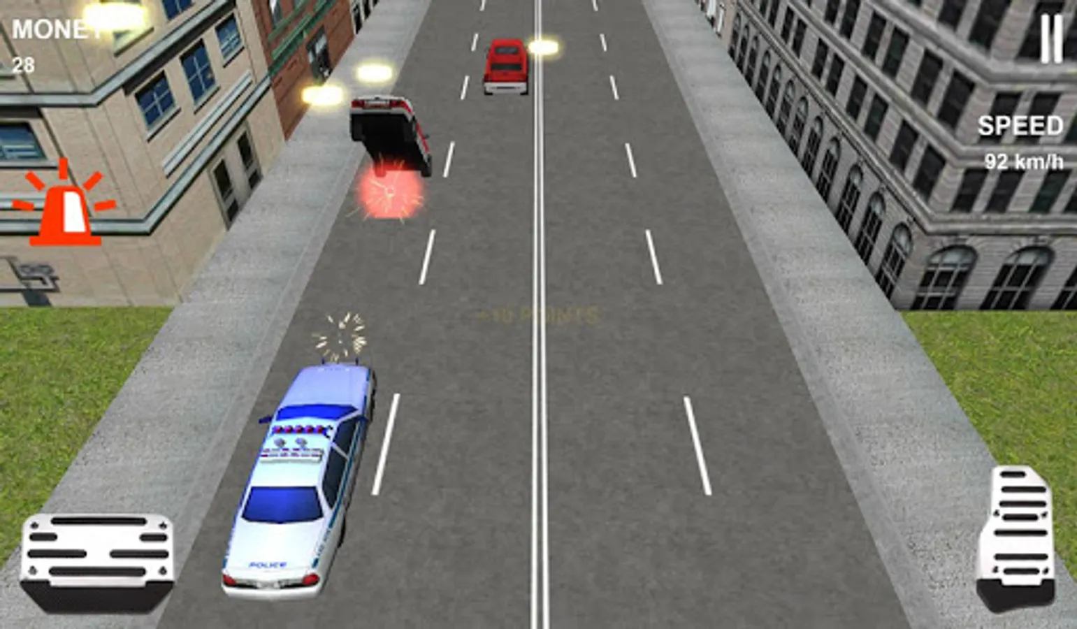 Become a police car driver and catch the bad guys. Turn on the police siren, race through traffic, destroy enemy cars, earn money and buy better police cars.