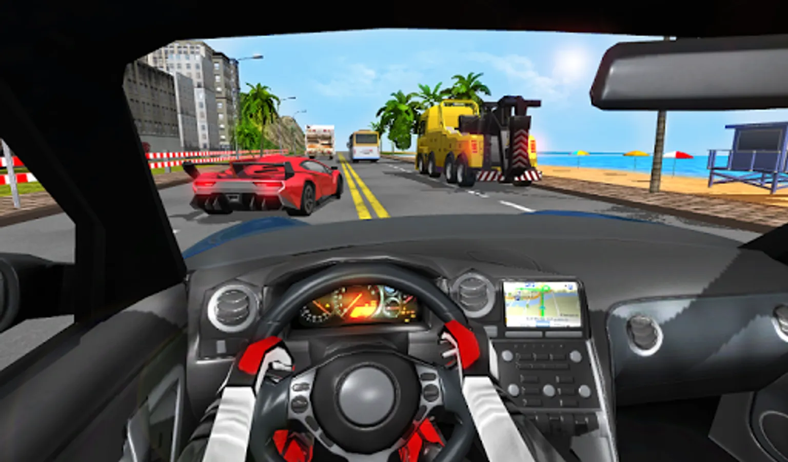 Choose your favorite supercar and race in cockpit view. Make dangerous overtakes, earn points and buy faster cars.