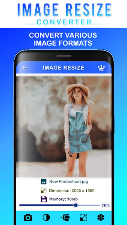 Easy-to-use Image Compressor & Resizer app helps you quickly downsize photo size or resize photo resolution.