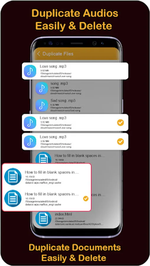 Find & clean duplicate images, duplicate audio files, contact, duplicate videos & duplicate documents in easy and simple way!