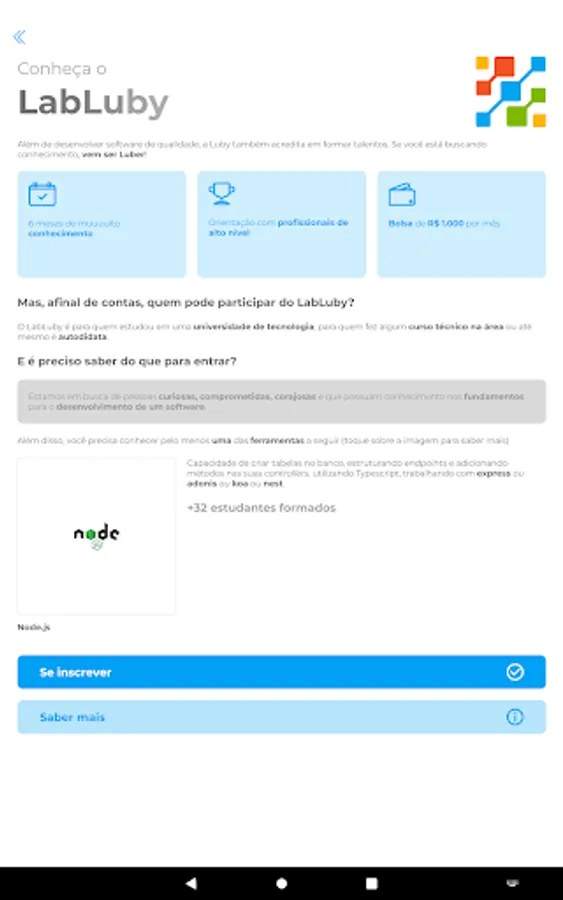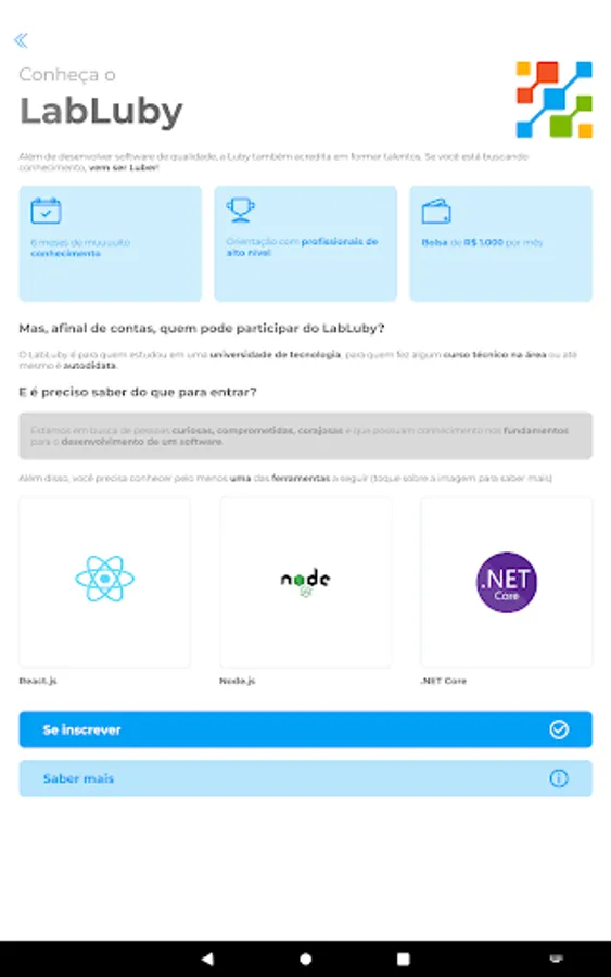 Through the LabLuby application, you, who participate in the LabLuby program, follow its development. Review your contact information, track your course progress, track the leaderboards to have fun with your peers, get notifications when you complete important modules and courses, and much more!