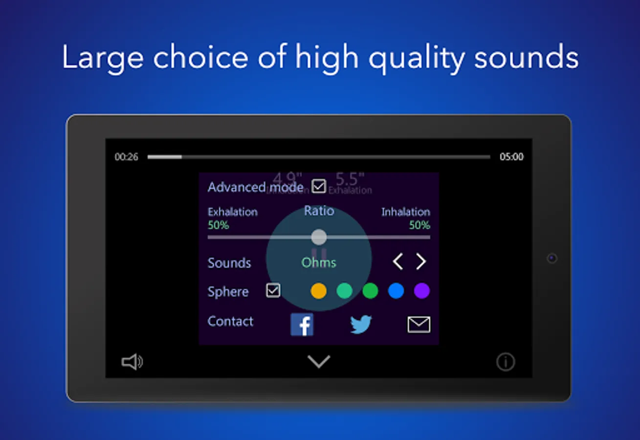 - Use it without looking at the screen thanks to a large choice of high quality relaxing sound sets