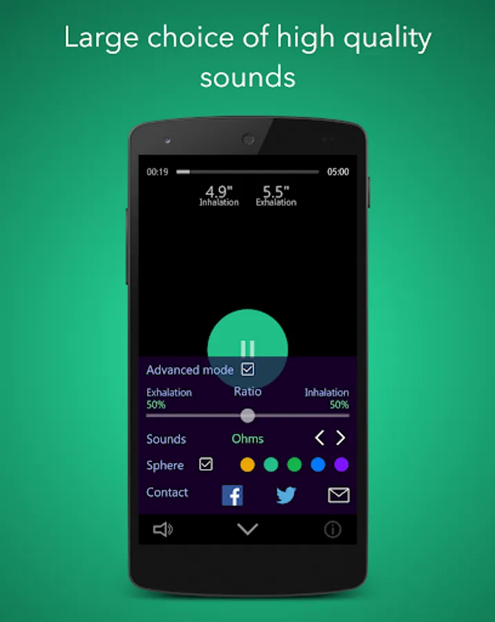 - Advanced mode, with 0.1s precision on inhalation and exhalation durations