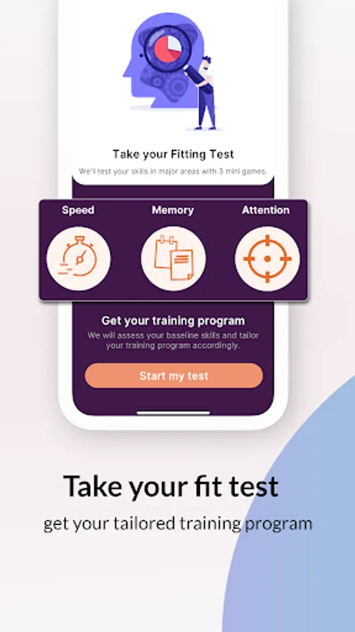 Firstly, we ask you to complete the free personalization and fitting test to prepare the tailored brain fitness program in line with your interests and development needs. As you play specially designed games and do brain workouts, we measure your core cognitive functions regularly, identify your weaknesses and strengths, and keep offering the most suitable brain exercises that fit your goal and needs best.