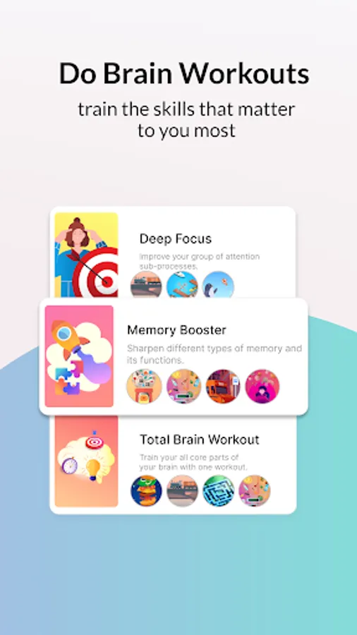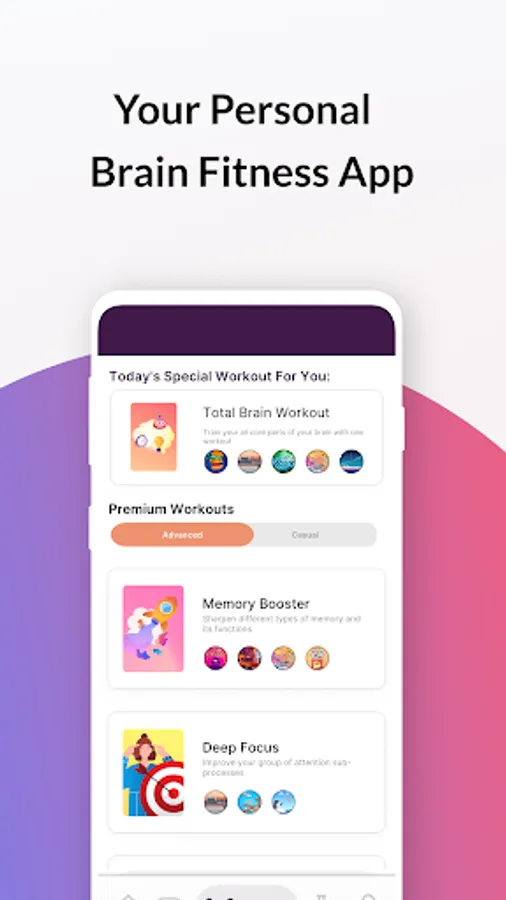 • Advanced workout mode to train the cognitive skills that matter to you most