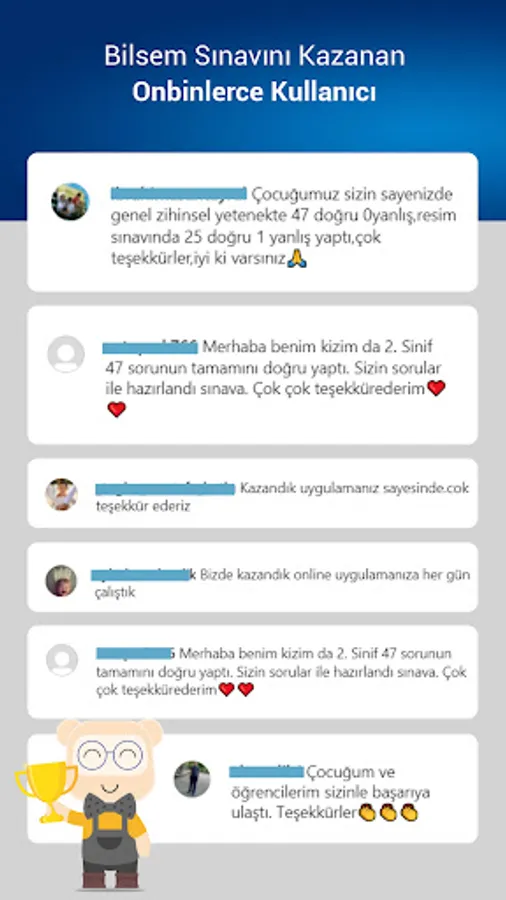 • Users who have won tens of thousands of BİLSEM exams,