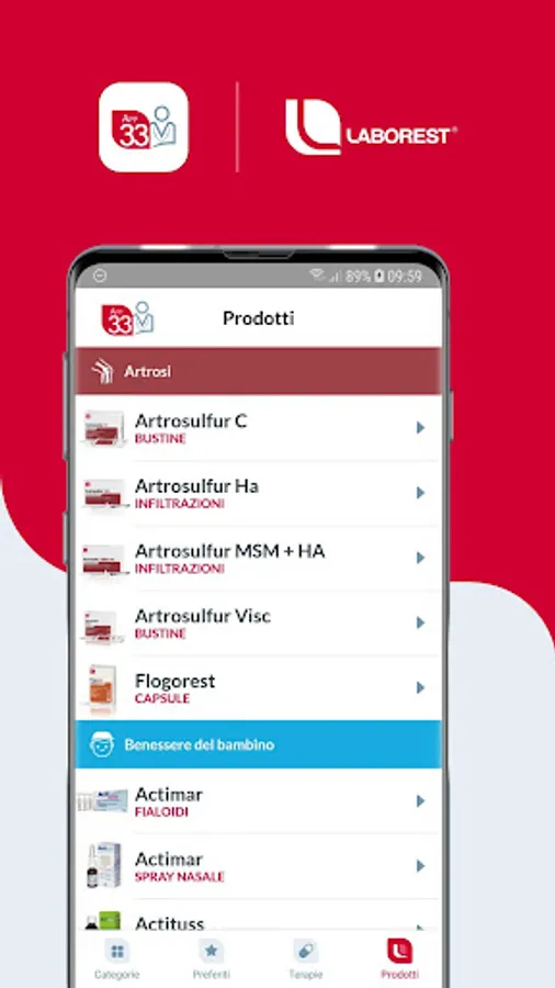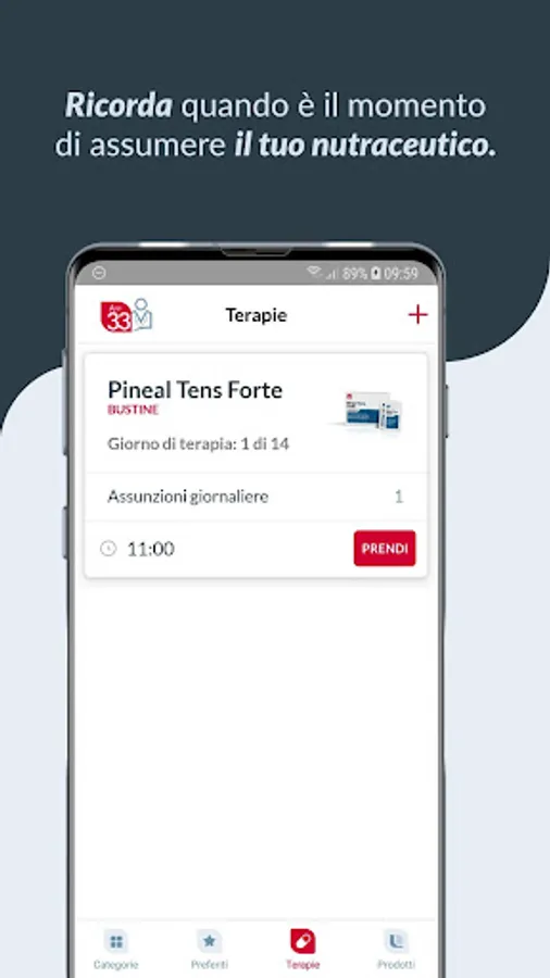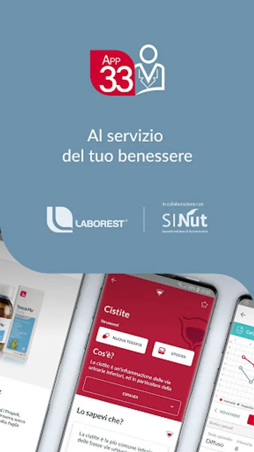 For this reason, App33 is born from the collaboration between Laborest and SINut (Italian Nutraceutical Company), an application that can be downloaded to your smartphone, which helps you remember the daily intake of the nutraceutical at the most correct time and gives you useful advice on style of life to increase the effectiveness of therapy.