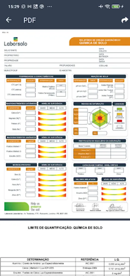 The Laborsolo application allows Laborsolo Laboratórios' customers to consult the results of their agronomic analysis, anytime, on their mobile device.