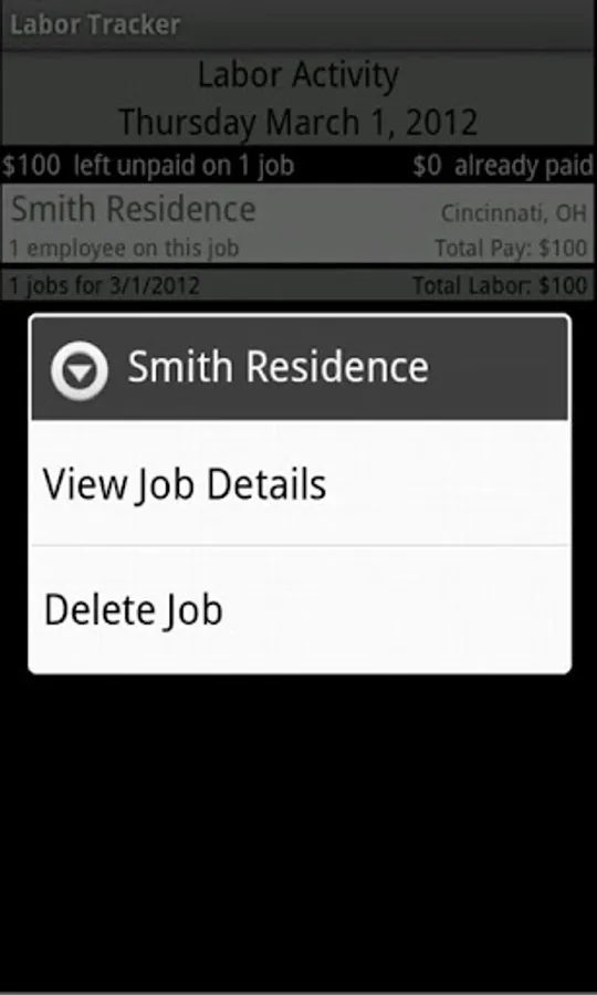 Enter in labor incorrectly? No problem. Simply long press on an employee item and you can delete that record. Or if you entered in an entire job incorrectly, simply long press on a job item and you can delete the entire job.