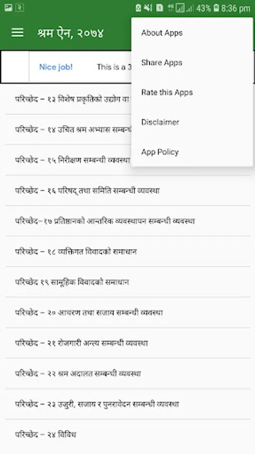 Labour Act (श्रम ऐन, २०७४ ) Labour Act App is Free and ads Supported App for Nepali students and Public. This App contain Labour act of Nepal 2074 in Nepali Language This App is developed to read Labour Act of Nepa easily in phone. This App provides digital way to read labour act of Nepal 2074.