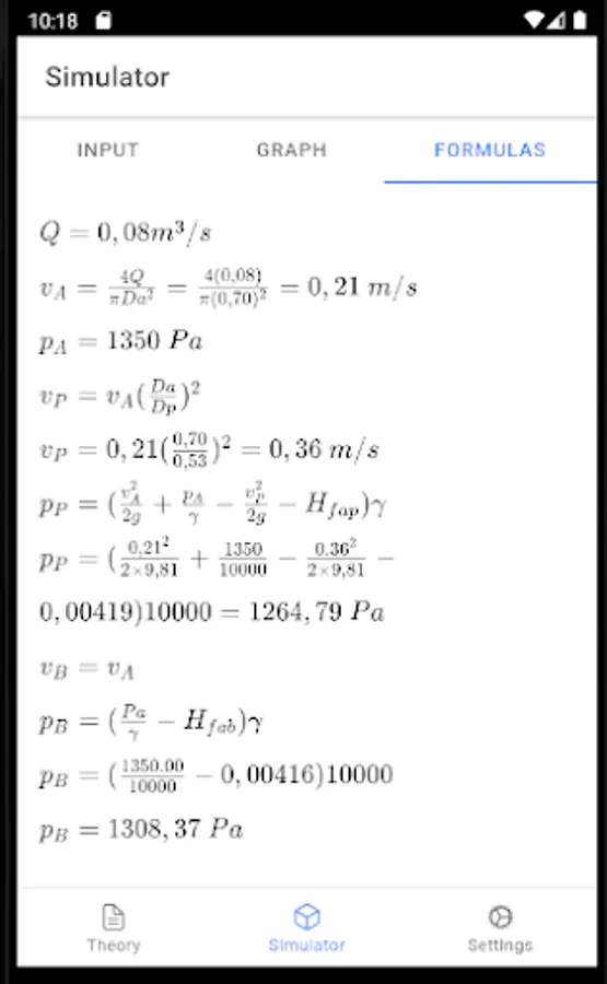 - Interactive calculation of the velocity variation in three sections of a venturi tube;
