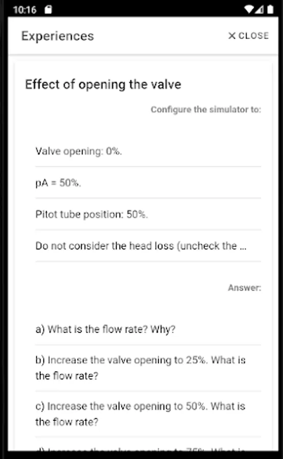 - Laboratory experiment script that allows you to check the effect of opening the valve