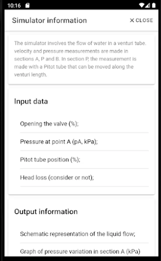 - Laboratory experiment script that allows you to verify the effect of head loss;