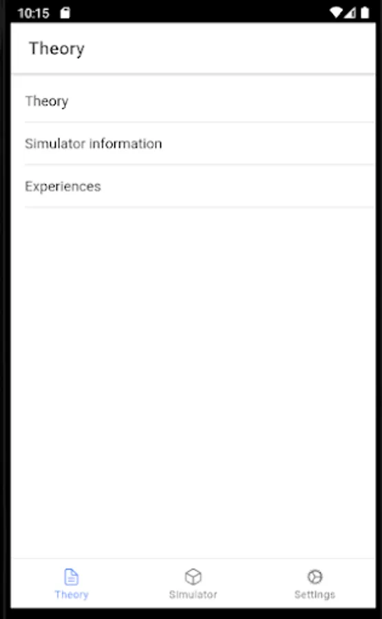 The application presents theoretical content and experiences with computer simulation, allowing you to understand the subject by observing the simulator's behavior.