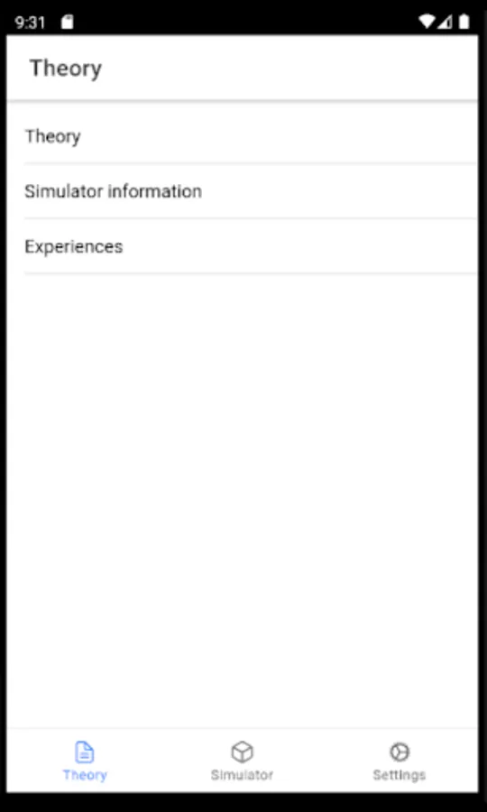 O aplicativo apresenta conteúdo teórico e experiências com simulação computacional, permitindo compreender o assunto através da observação do comportamento do simulador.