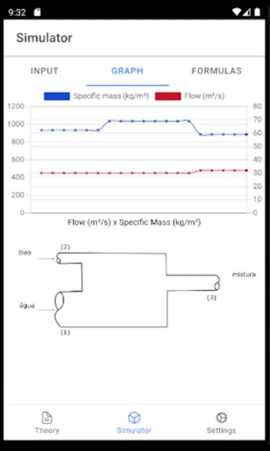 - Representação gráfica interativa da vazão da mistura com o passar do tempo;