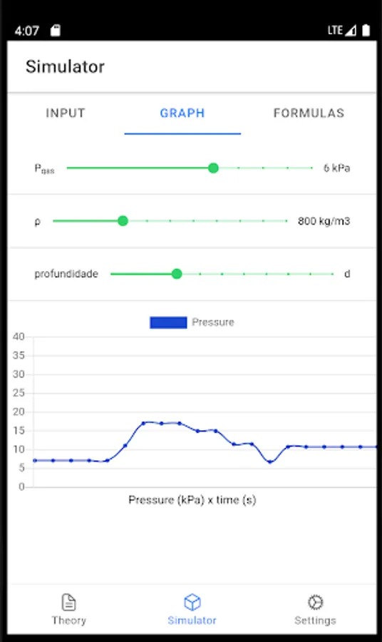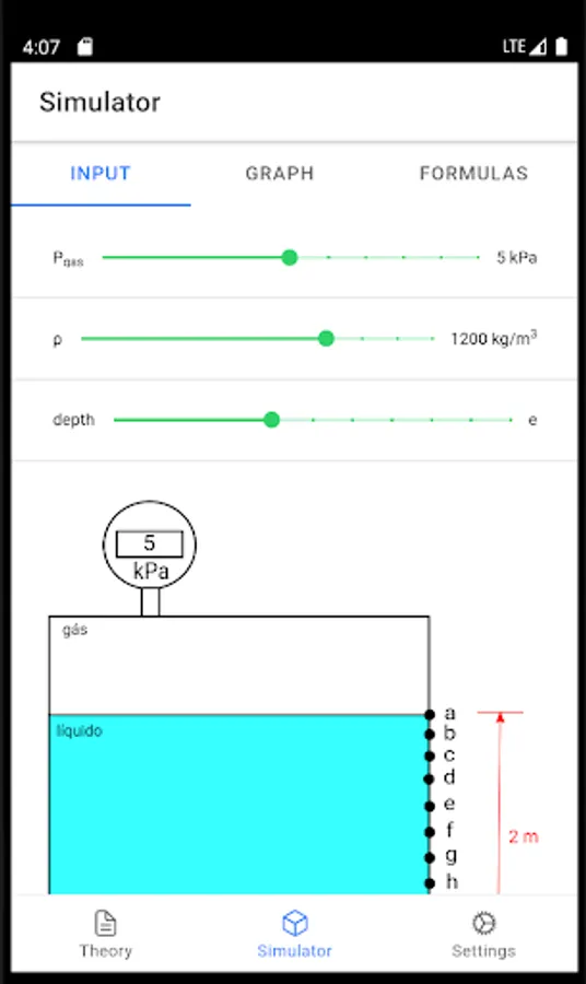 - Interactive graphic representation of pressure in a container of pressurized liquid and gas;
