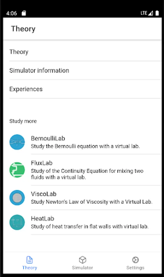 The application presents theoretical content and experiences with computer simulation, allowing you to understand the subject by observing the simulator's behavior.