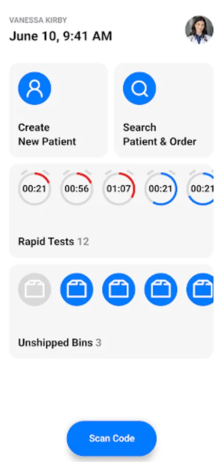 An easy-to-use mobile app, available for registered phlebotomists and lab sample collectors. The app enables staff to process lab test requisitions and create and process lab test orders, and manage the delivery logistics from/to lab.