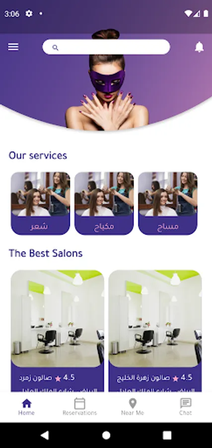 تطبيق لتصفح الصالونات وحجز المواعيد