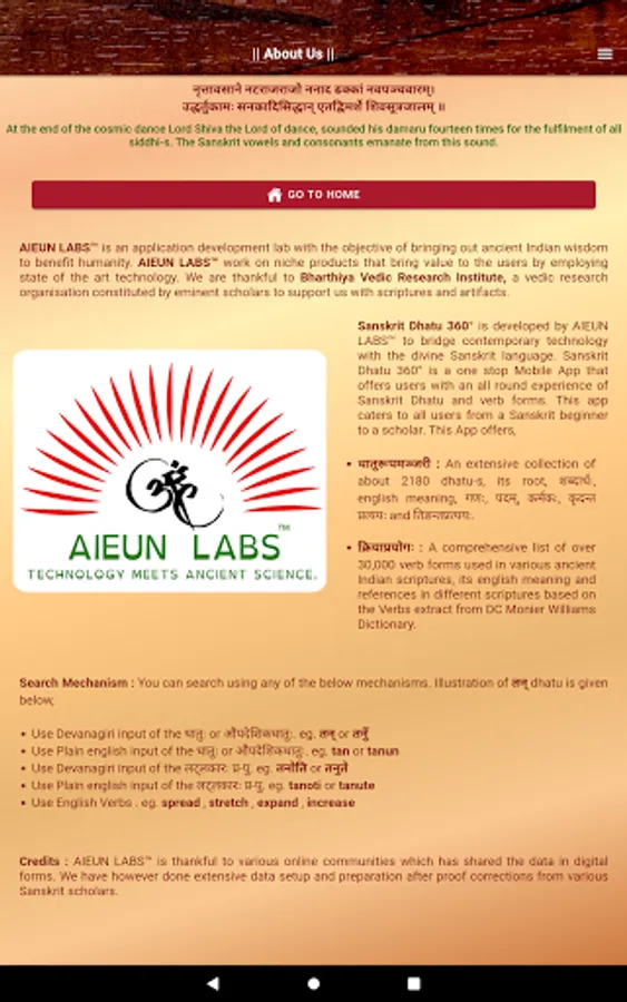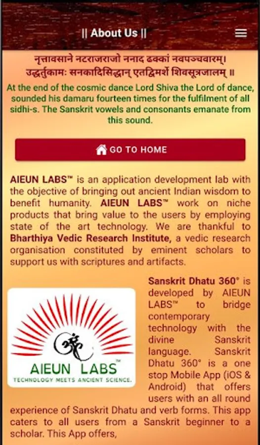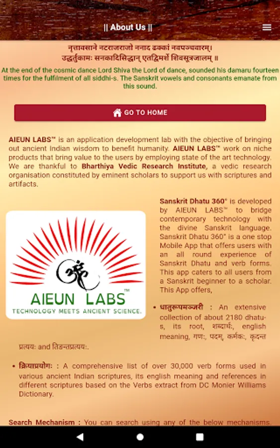 Sanskrit Dhatu 360° is developed by AIEUN LABS™ to bridge contemporary technology with the divine Sanskrit language.