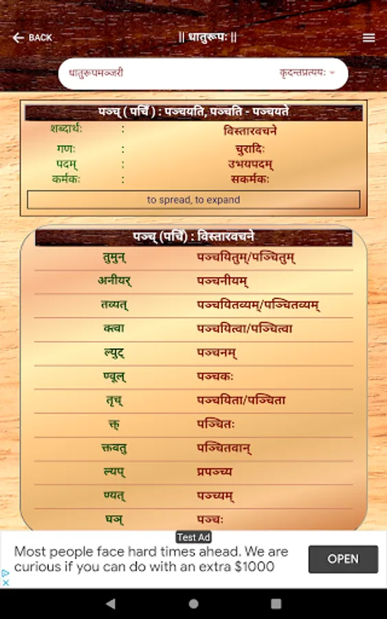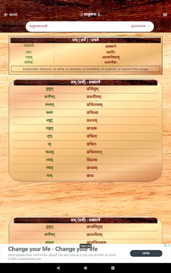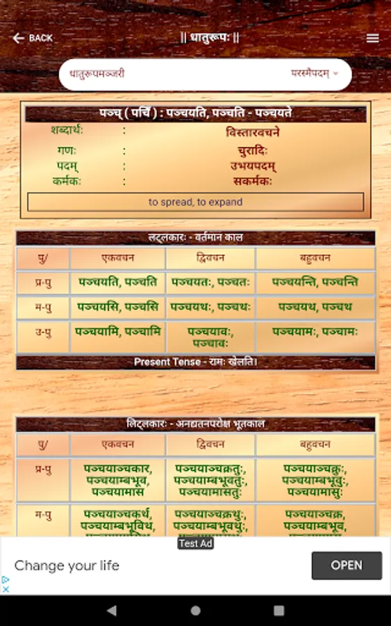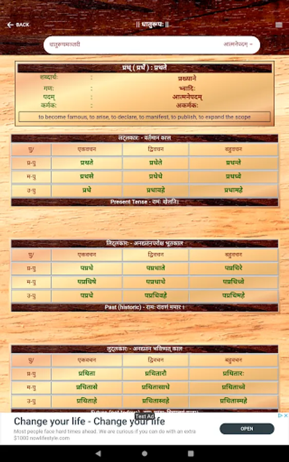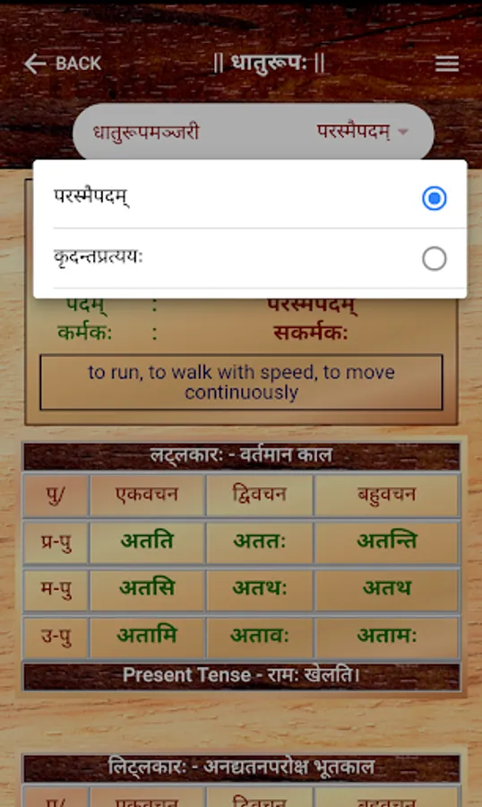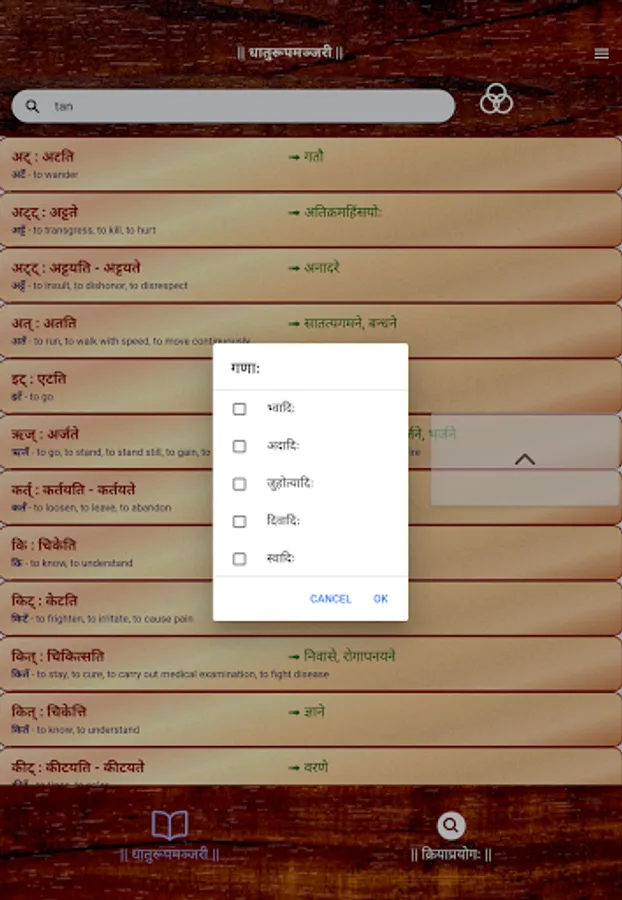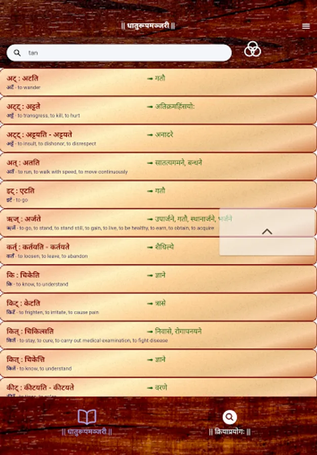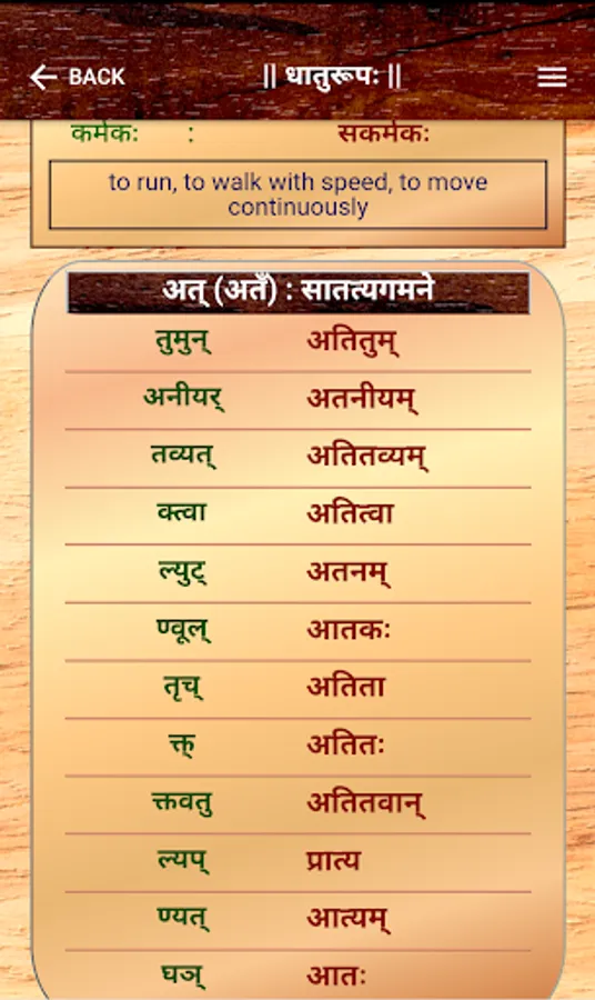 Sanskrit Dhatu 360° is a one stop Mobile App that offers users with an all round experience of Sanskrit Verb forms and Dhatu. This app caters to all users from a Sanskrit beginner to a scholar. This App offers,