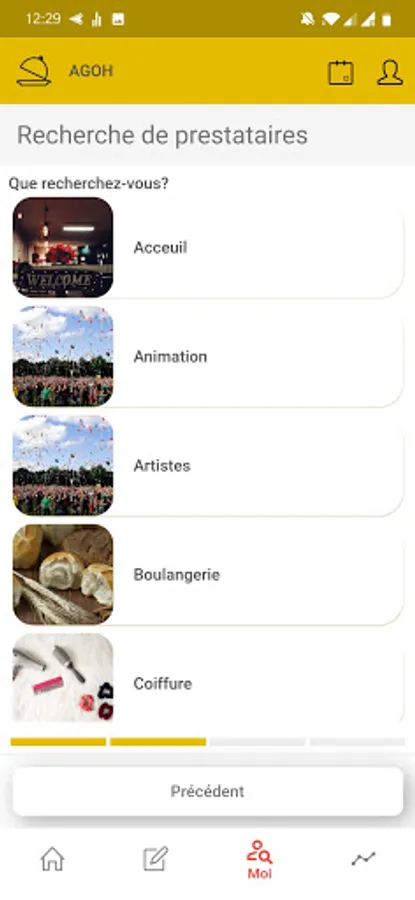 Find near you, all the suppliers necessary for the success of your event. Photographer, animator, pastry chef for your cakes, decorator for your rooms, party rooms, hostess etc .... They are independent businesses or professionals and also determined individuals. Check their offers and ask for their availability and free quotes for your project. Some photos of their previous events available in the app will help you make your choice. As well as the opinions received.