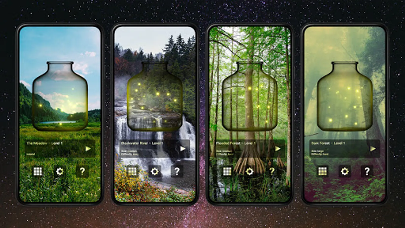 Fireflies contains thousands of puzzles of several sizes and levels of difficulty. For each puzzle that you complete, you are rewarded a firefly. These fireflies do not serve a specific purpose other than for you to look at and enjoy them.