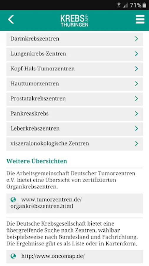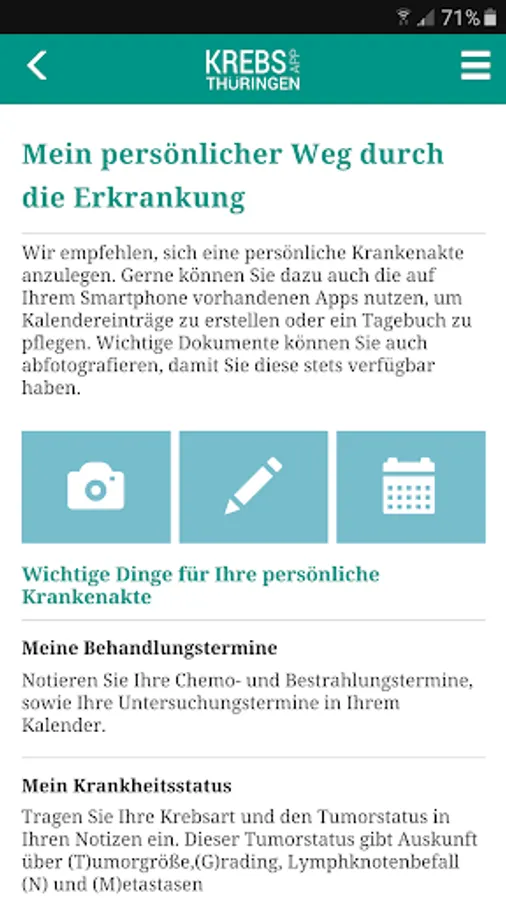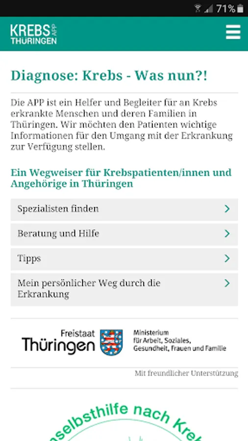 The APP is a helper and companion's cancer individuals and their families in Thuringia. We want to provide patients important information for dealing with the disease are available.
