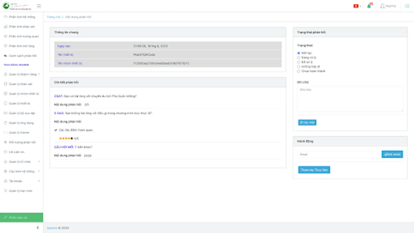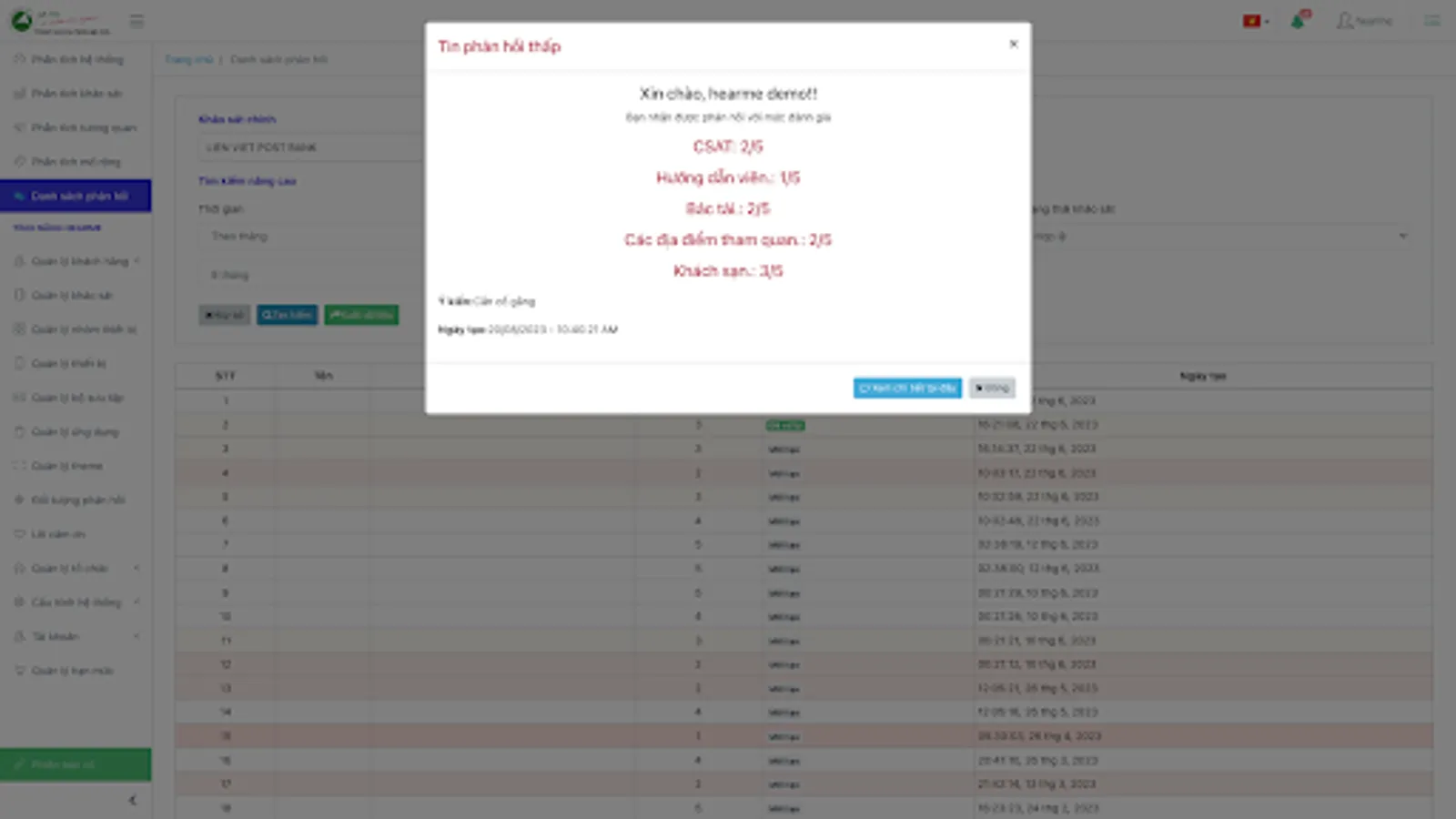 hearme is the solution to send feedback, measure customer satisfaction; It is applied in many fields: chain stores, public administrative services, factories, medical services, hotels ... This is a tool to help businesses grow sustainably, increase revenue and reduce selling costs. by focusing on making customers more satisfied; Customers are loyal to the business and become a giant marketing team for the business itself.