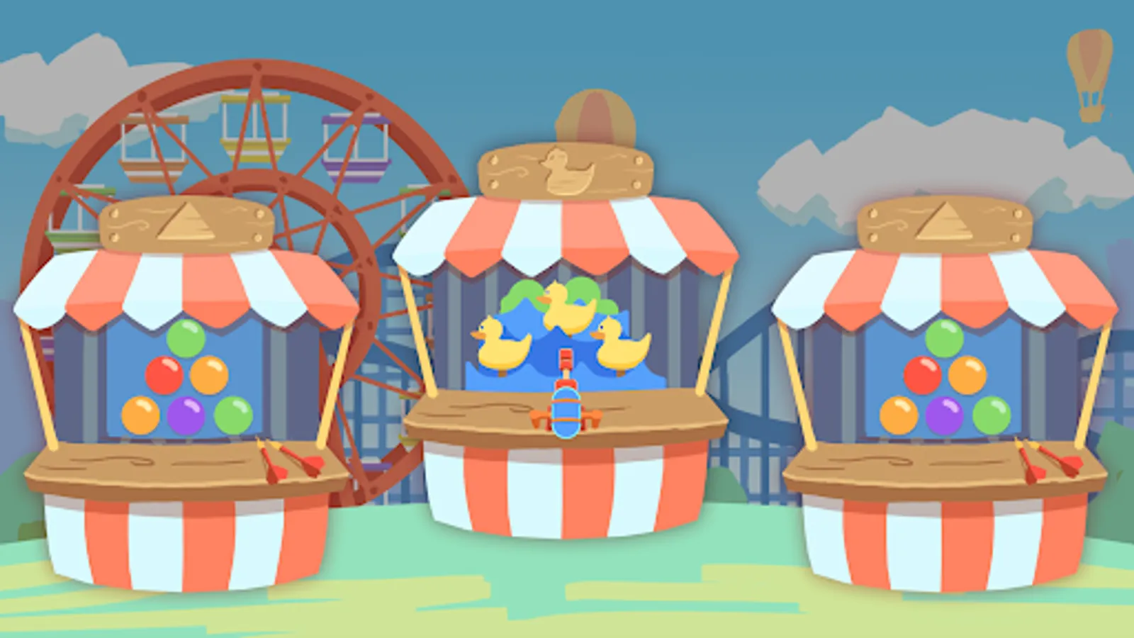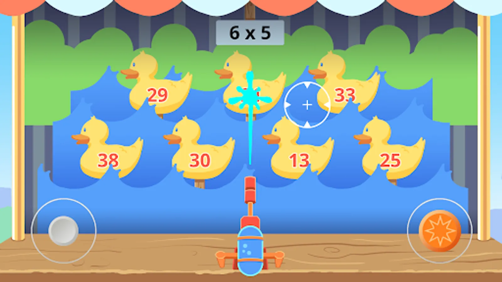 The game takes place in a booth in the Mathematical Park and is inspired by “target shooting” challenges, very common in amusement parks and circuses. In this sense, the player's main objective is to solve the mathematical operations that will appear on the screen, hitting the ducks with the correct answers, using a water gun controlled by a joystick. For this, the player will have a certain amount of time, and the more operations he solves, the higher his score will be.