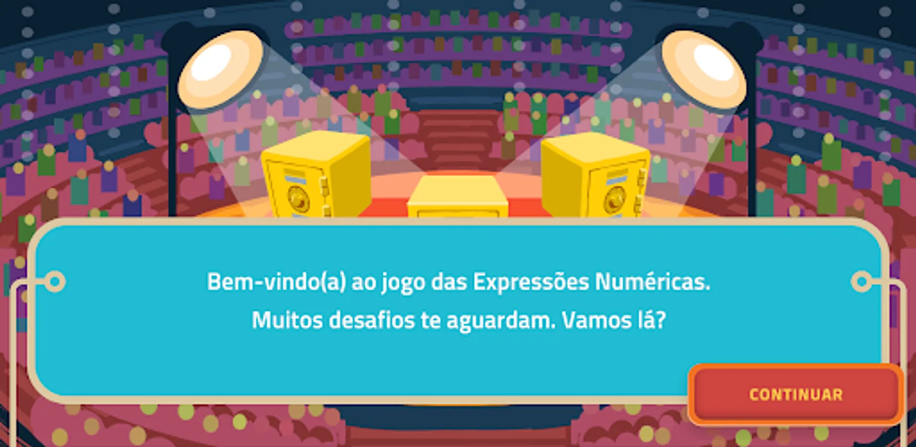 The Cofre das Expressões Numéricas is set in the arena of Parque da Mathematics, where there are three mechanical safes. The player's objective is to discover the combinations of the safes and open them; for that, he will have to observe the numeric expressions on the screen and solve them. It is a game that, in addition to exploring concepts related to numerical expressions, works on logical reasoning.
