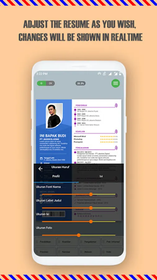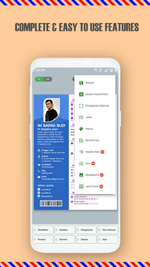 - Changing the language of CV / Resume title labels is very easy (Currently available in Indonesian & English and will be added over time)