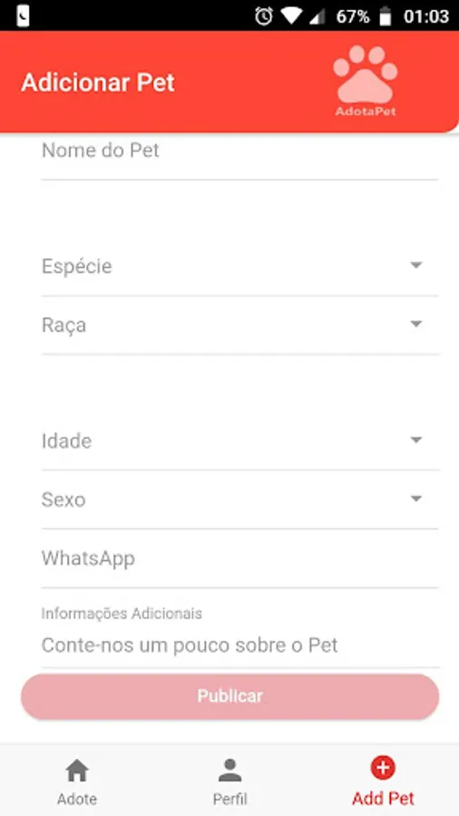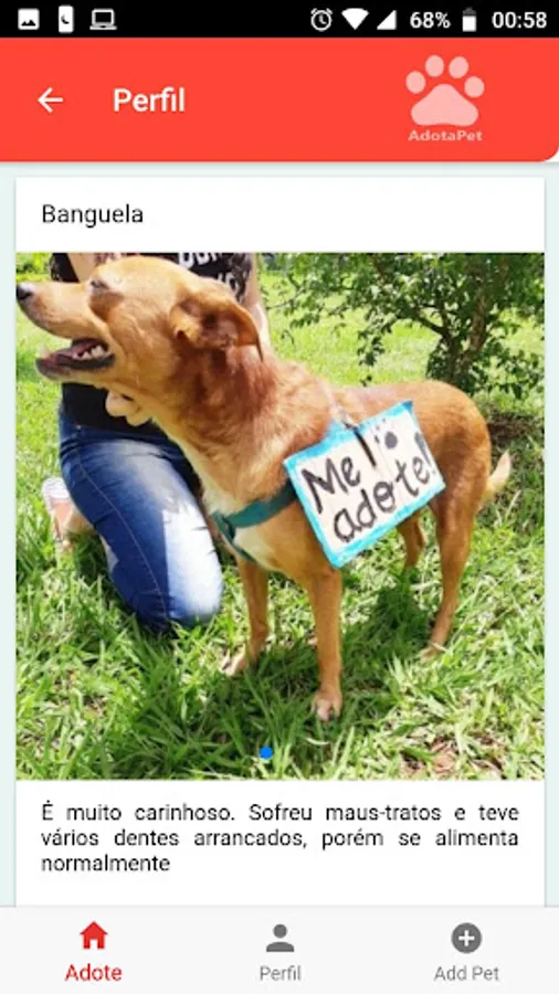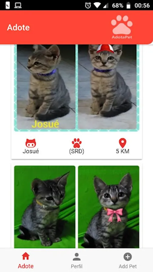 Adoption application that according to WHO, in Brazil has 30 million animals living on the streets, being mostly by Cats and Dogs, then that is the value that we will always have in mind, and we will work until it is the closest to zero possible.