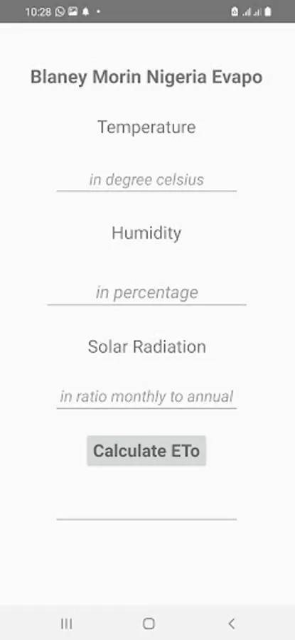 This App is best applied using monthly meteorological data of temperature, humidity and monthly to annual solar radiation ratio but can also serve daily, weekly and annual where the need arises.