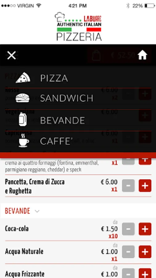 Browse the menu, make your choice and select your umbrella in the number, to receive the order lying comfortably on your couch!