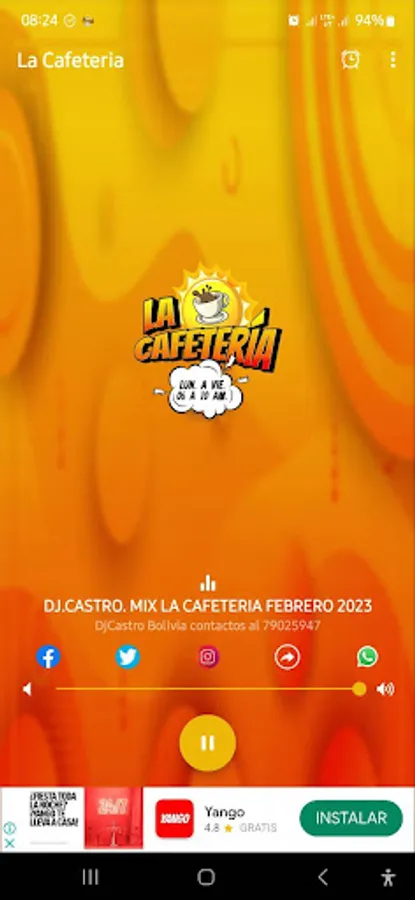 The new application of La Cafeteria, where you can listen to the program and also you can listen to mixed music, all the rest of the day.