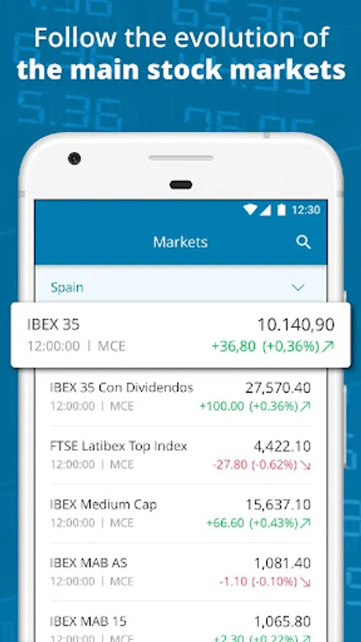 ✔️ Buy and sell shares and securities in the main stock markets and national (IBEX 35) as well as international (DAX, CAC 40, FTSE 100, DOW JONES, NASDAQ 100, etc). indexes.