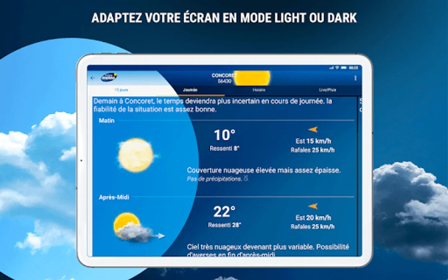 • WHEREVER YOU GO, the widget lets you directly check the weather forecast for your location. You can authorise geolocation (or alternatively choose not to) when the app is closed or unused to continue to have up-to-date information and optimise advertising. The widget now displays a 6-hour forecast as well as live weather, and can be resized as you wish. What more could you ask?