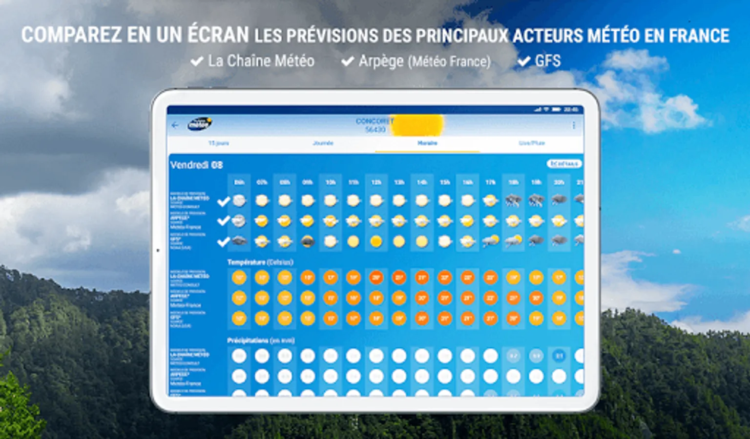 Weather Crave makes your life easier: view, on a single screen, the forecast for the 3 most popular weather models in France: