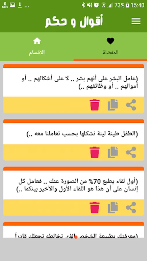 Statements and judgment is a wonderful application on Google Play includes a set of judgment and statements Akhaddt of life radii man to help him to continue his life and how to live with people, how to recognize them only their morals and their actions daily, also includes the rule of love and grief, and the study and progress in life, the rule of treason, sentenced for separation, provision of real-life experiences of others containing salvation experiences of others through their positions daily life to benefit from each other and benefit them.