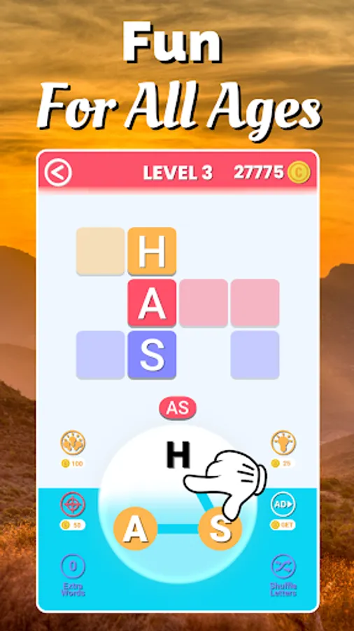When starting a new level you will be presented with a set of letters in a wheel. Use your favorite finger to swipe between the letters to create words that fit in the crossword field. Keep swiping away until you find all the words and complete the level.
