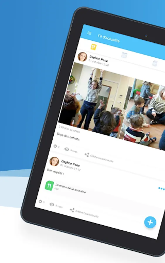 Parents can find different content posted by the teams: useful information, menus, calendar, appointments, photos, videos, in short everything that allows to better understand the educational project or to stay informed during a discovery trip.