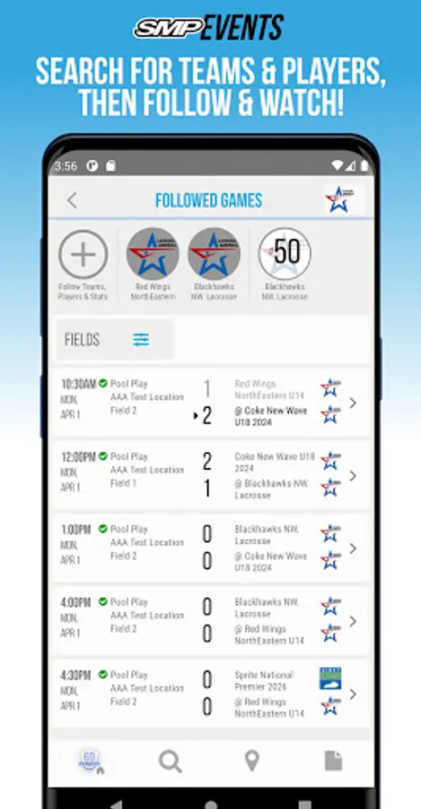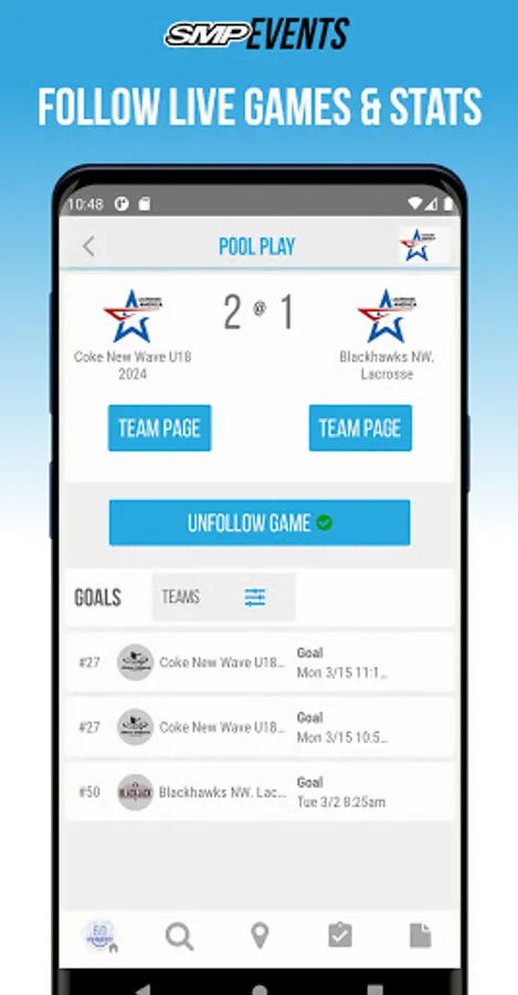 Live game scores, live player stat notifications, live seeding updates. All the information you could want, right at your fingertips. Want to get notifications about your all-star player? You got it with our Follow Player feature! Not sure what field you’re playing on first? We’ve got your covered on our Event Dashboard. Not sure where to go on-site? Our interactive facility map makes navigating a breeze.