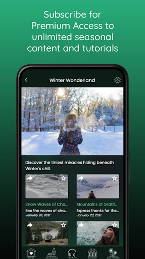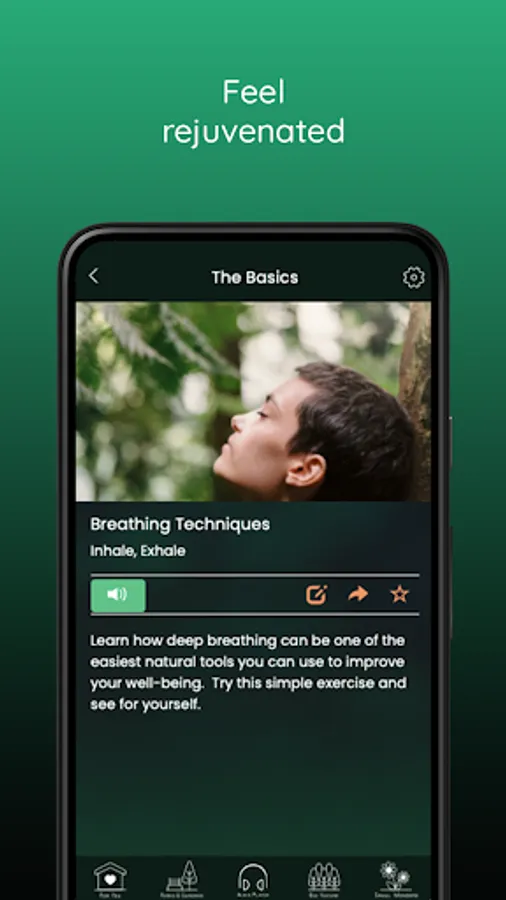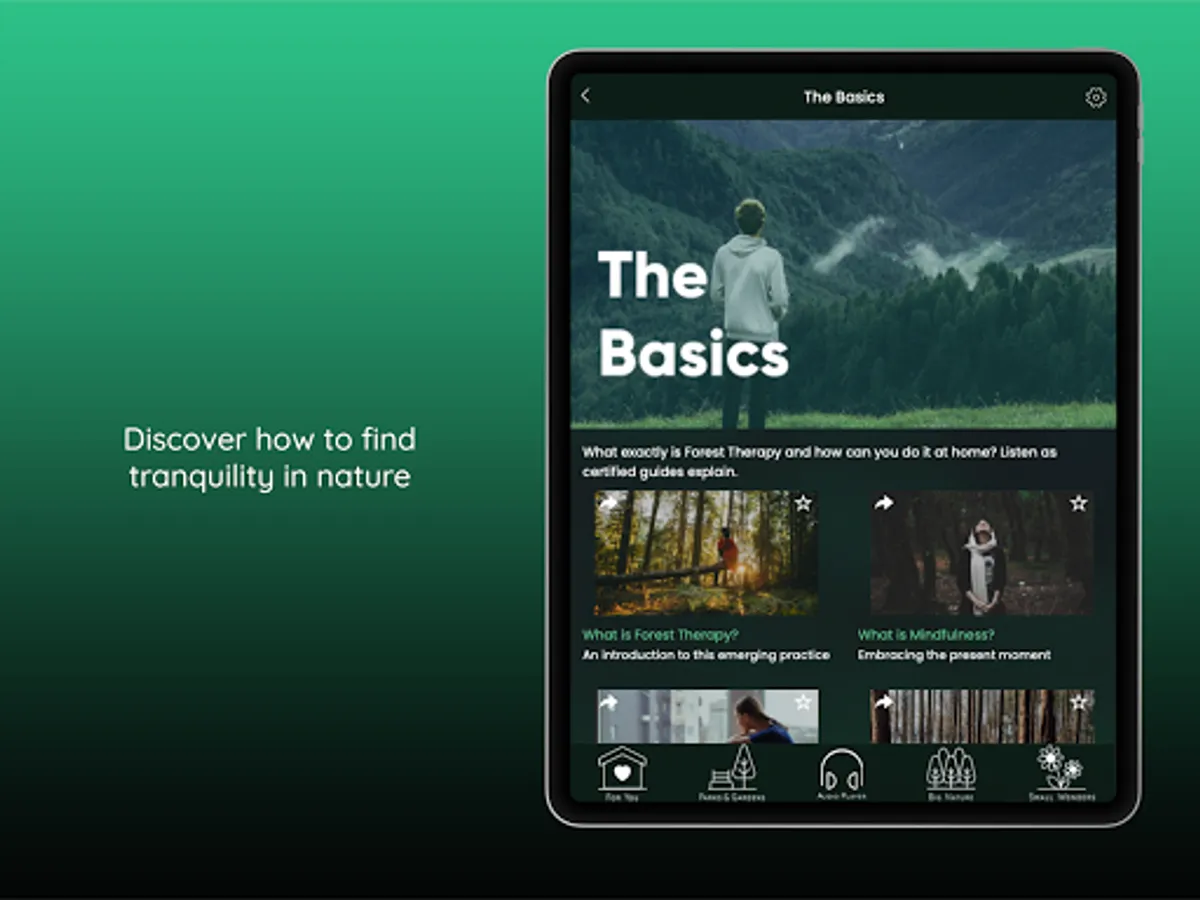Forest Therapy has evolved to become a therapeutic practice that combines nature immersion with a broad range of mindfulness techniques. Research has proven that Forest Therapy can help decrease stress, boost your immune system and improve your overall mental health. TreeQuility’s introductory sessions explain the brief history and origins of Forest Therapy. The app will give you the tools to create your own practice.