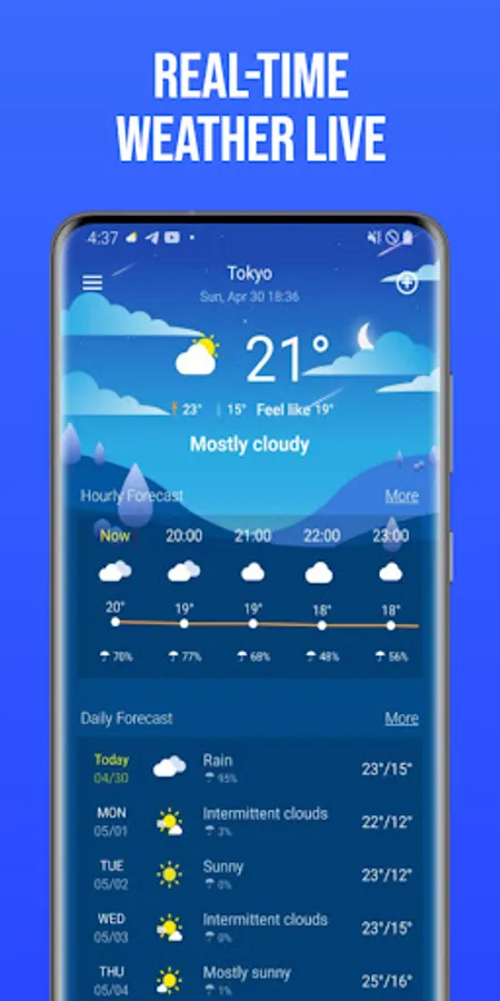 Weather Forecast Master is an accurate and reliable local weather forecast application that provides hourly and daily weather data updates. With its easy and friendly interface, the app offers you a clear view of temperature, humidity, air quality, visibility, wind direction, wind speed, sunrise and sunset indicators, and more. The app also provides suggestions for future activities based on the weather forecast in the coming days. Manage your current location and check the weather anywhere you want, easily and quickly.