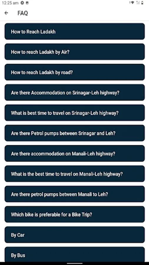 FAQ about Ladakh: The app features a dedicated section addressing frequently asked questions related to Ladakh, such as travel tips, cultural nuances, and essential information for a smooth journey.