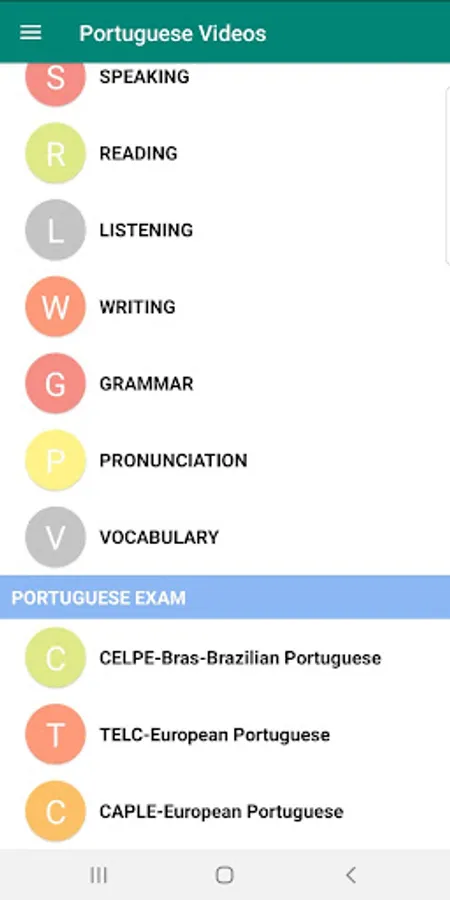 2. Practice Portuguese examination. Every subject includes a famous series of videos for writing, speaking, listening, reading.